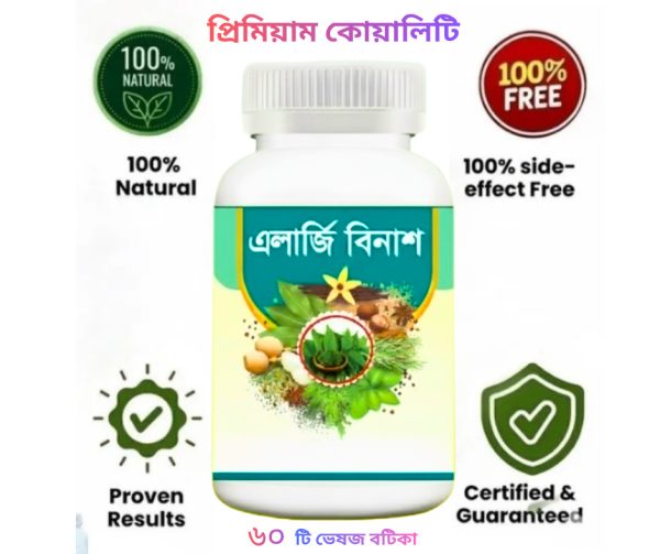 আমাদের পণ্যটি শতভাগ প্রাকৃতিক ভেষজ দিয়ে তৈরি, তাই এর কোনো পার্শ্বপ্রতিক্রিয়া নেই। এটি বিভিন্ন ধরনের অ্যালার্জি ও দীর্ঘস্থায়ী চর্মরোগের বিরুদ্ধে কার্যকরভাবে কাজ করে।